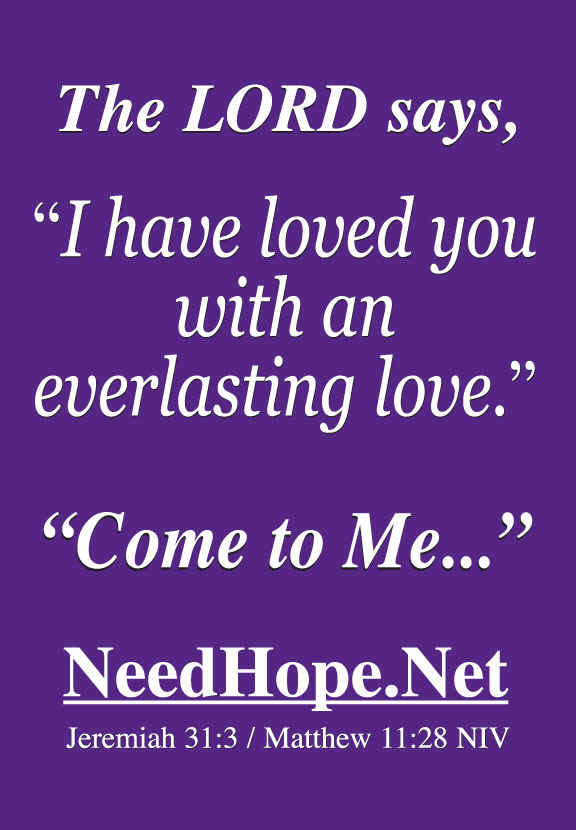 Send Donations To: Billboards for Christ, Inc. P.O. Box 27 Chester, MD, 21619-0027, U.S.A. "Everyone who calls on the Name of the Lord will be saved." "Todo aquel que invoque el nombre del Señor sera salvo." - Joel 2:32, Romans 10:13, Romanos 10:13 Fair Use Permission is granted for all teachings on this website with one constraint: All printed or verbally read material must note "Copyright of Billboards for Christ, Inc. Found at www.BillboardsforChrist.org". For more extensive use, please contact us. All Bible verses are from The Holy Bible, New International Version®, NIV®. Copyright© 1973,1978,1984 by International Bible Society®. Used by permission. All rights reserved worldwide. -- La Santa Biblia, Nueva Version Internacional®, NVI®. Copyright© 1999 by International Bible society®. Used by permission. All rights reserved worldwide. -- Verses followed by TEV or CEV are from Today's or Contemporary English Version with copyright permission of the American Bible Society.. NKJV is by Thomas Nelson Publishing. Nueva Biblia Latinoamericana de Hoy(NBLH)©2005 by The Lockman Foundation, La Habra, California All other writings are used with copyright permission of CSB. Have questions or comments about this web site? Write our webmaster at FEEDBACK Copyright © 2002 Need Hope. For Personal Faith Questions please contact us through our FEEDBACK page. Billboards for Christ, Inc. is not responsible for the content of the links on our website. See also www.NeedHope.net Have questions, comments or problems about this web site? Send e- mail through our FEEDBACK page. Copyright © 2000 Billboards for Christ, Inc. Last modified: January 30, 2006 |